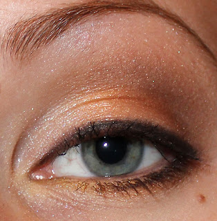 Brun göonskugga ytters på ögonlocket, yttterst på undre fransraden och längs globlinjen, CopperSheen (Triopalett)