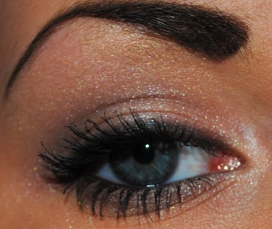 Apply the white shimmery eye shadow on the eyelid.