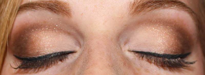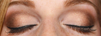 Light pink eye shadow at the inside of the eyelid and at the bottom of the lower lash line.