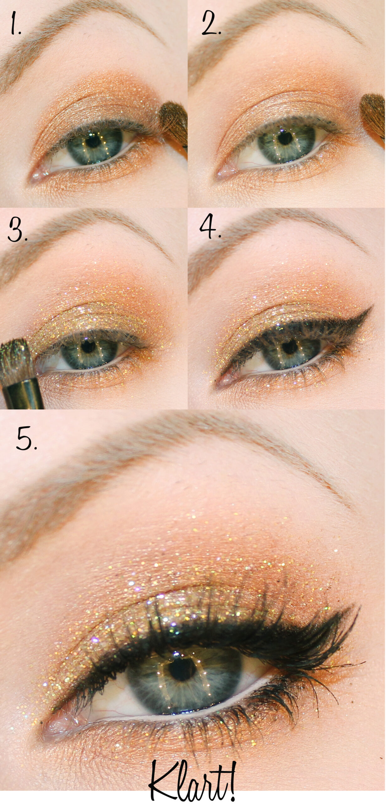 Here is a bright and glittery New Year's make-up for those who do not like such dark make-up! Incredibly beautiful for colorful lips as well. In addition, it is very easy to make!