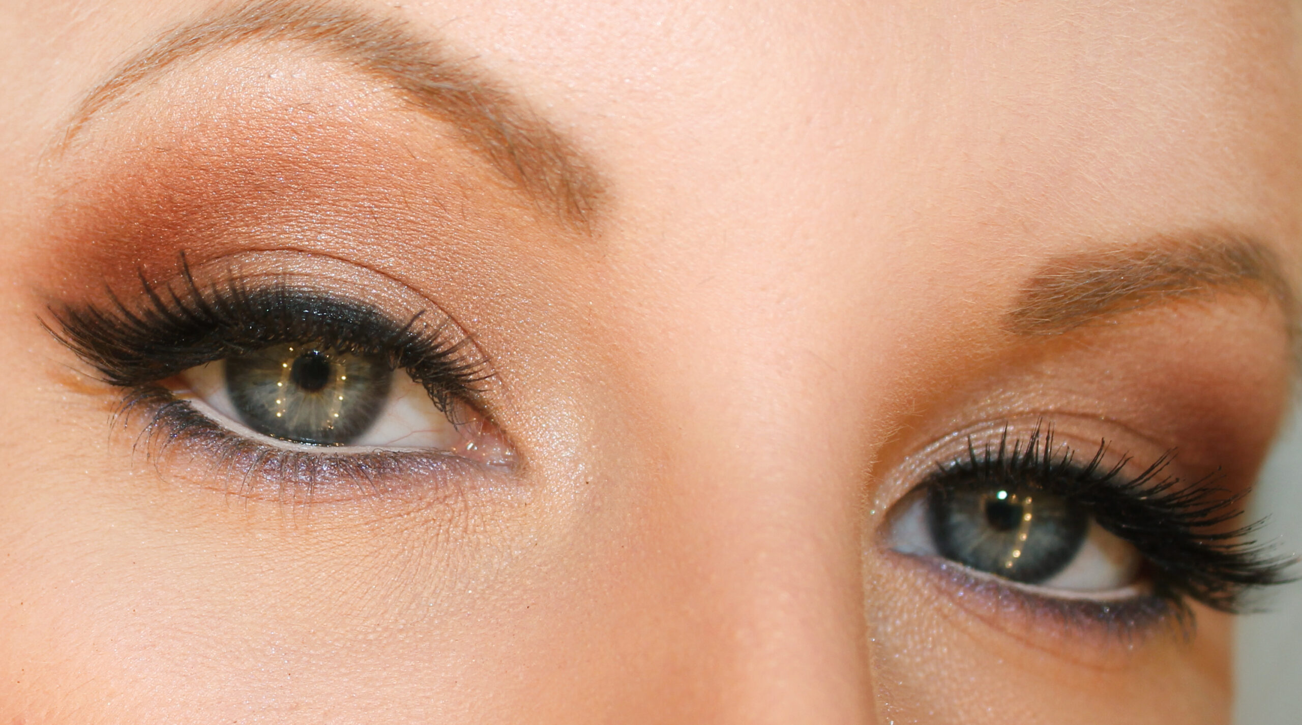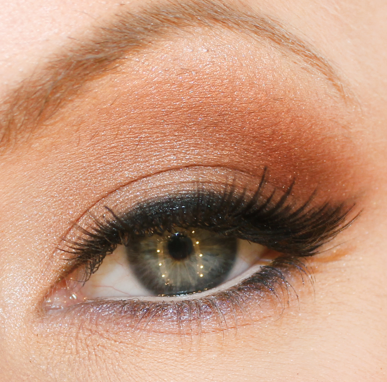 Brown eye shadow at the end of the eyelid and along the globe line.