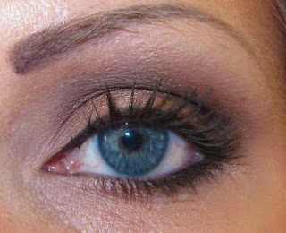 Brown eye shadow on the eyelid and lower lash line.