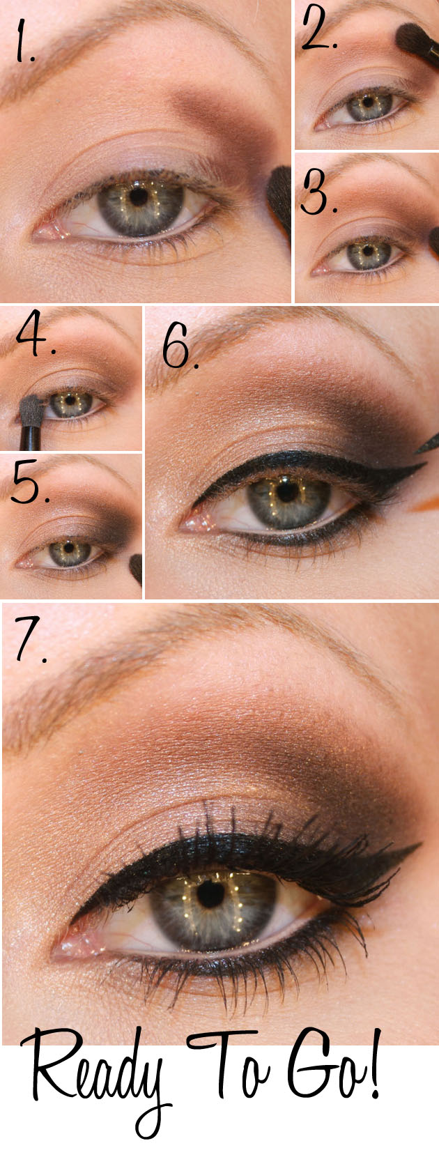 6. Black eyeliner + wing along the upper lash line and along the entire lower lash line.