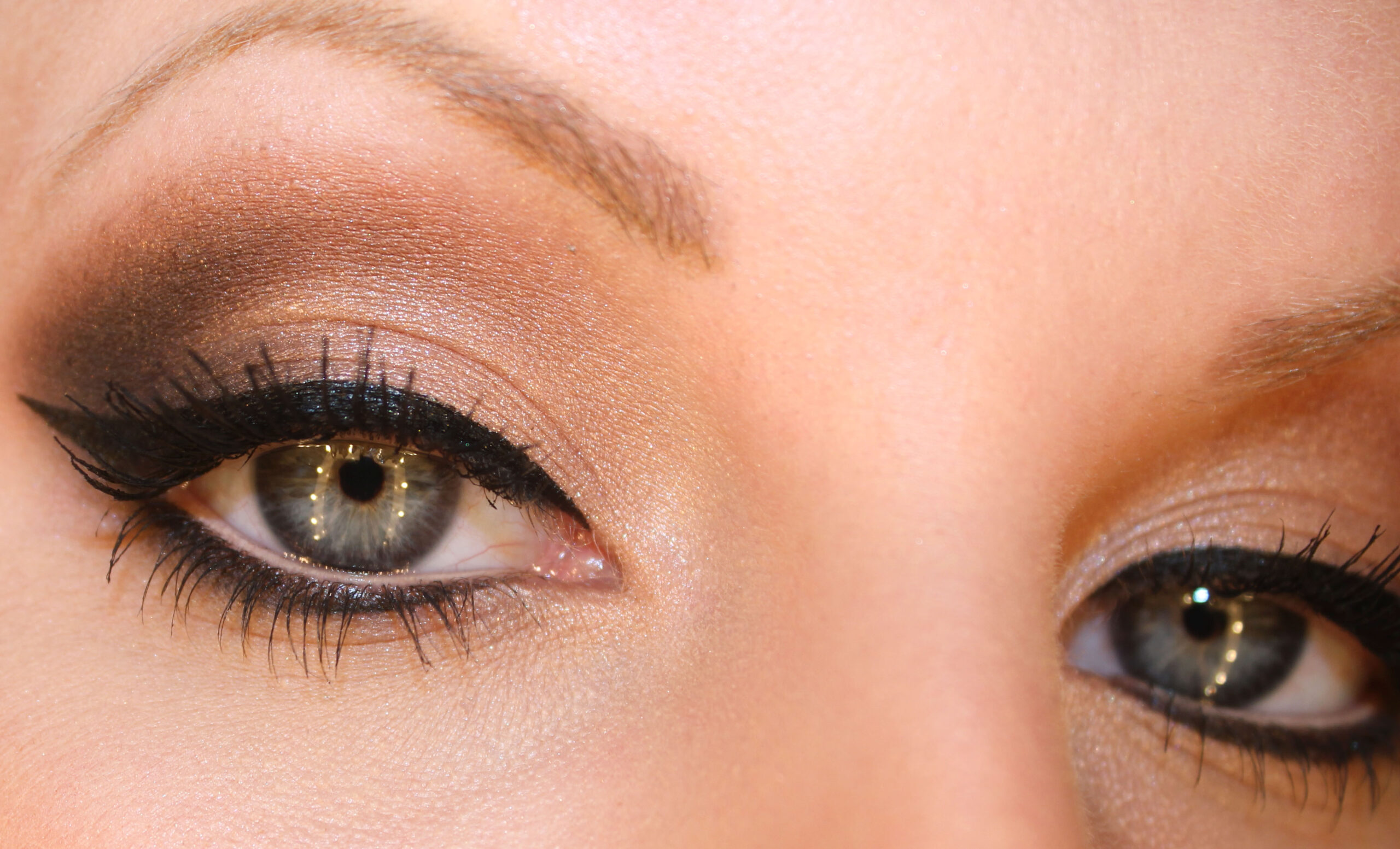 1. Brown shimmery eye shadow at the end of the eyelid.