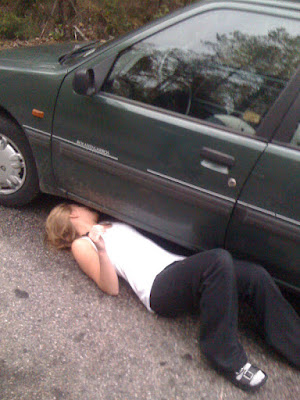 Entre otras cosas, se soltó el silenciador en el coche de Anniken, de modo que colgó y se arrastró por el suelo. ¡Entonces tuve que parar!