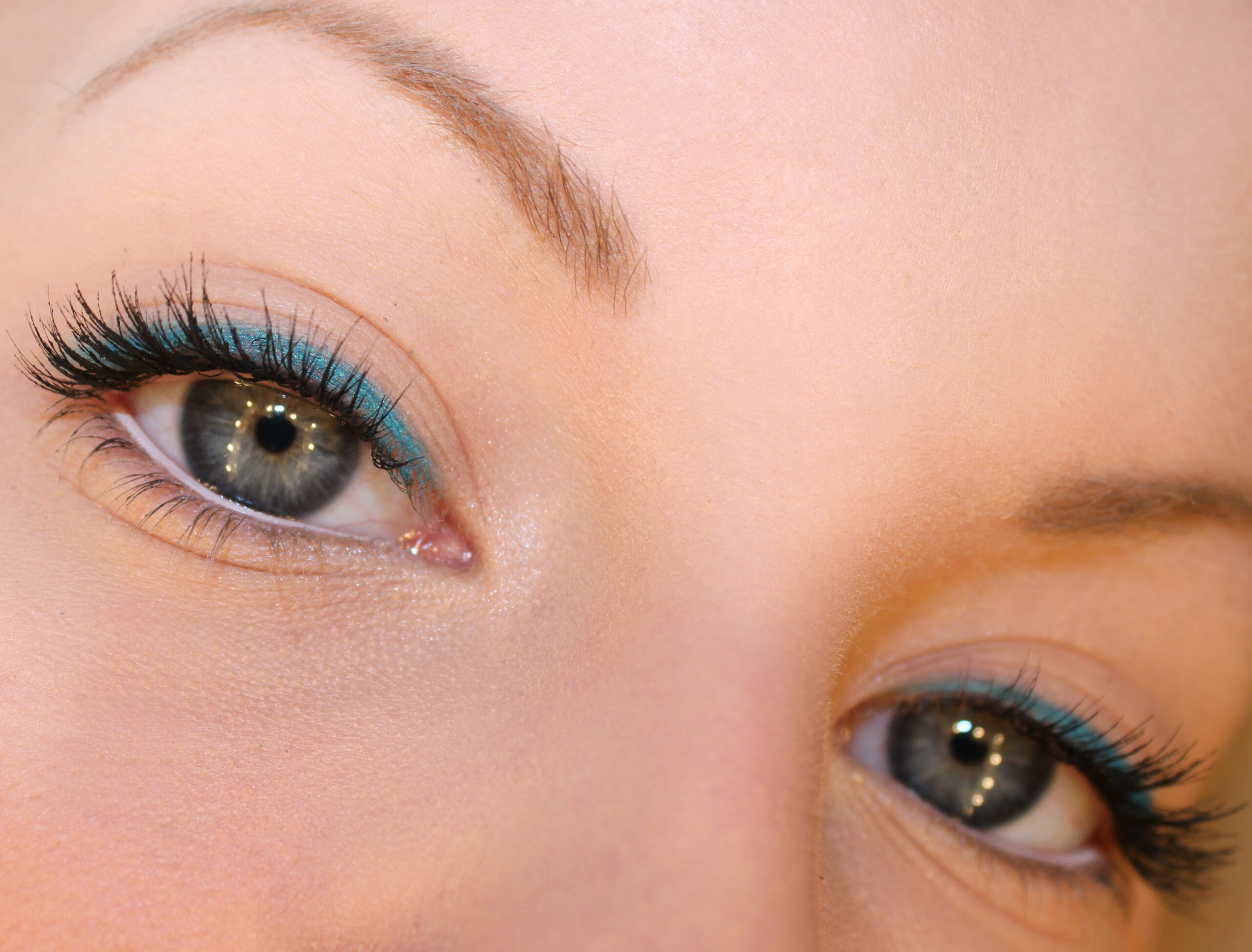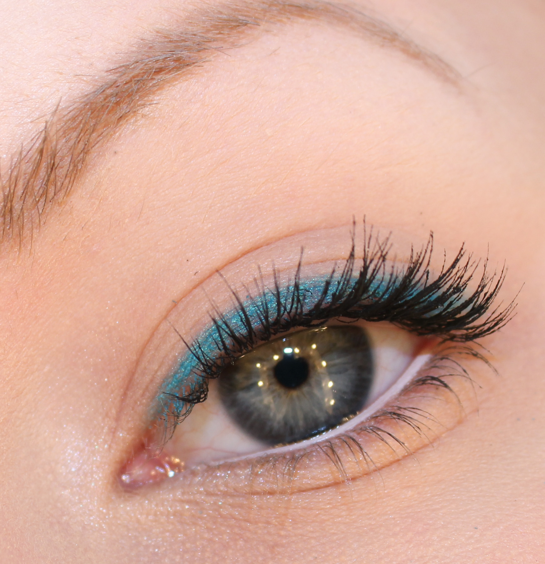 Delineador de ojos turquesa a lo largo de la línea de las pestañas superiores, Yves Rocher Impermeable Kajal (Turquesa)