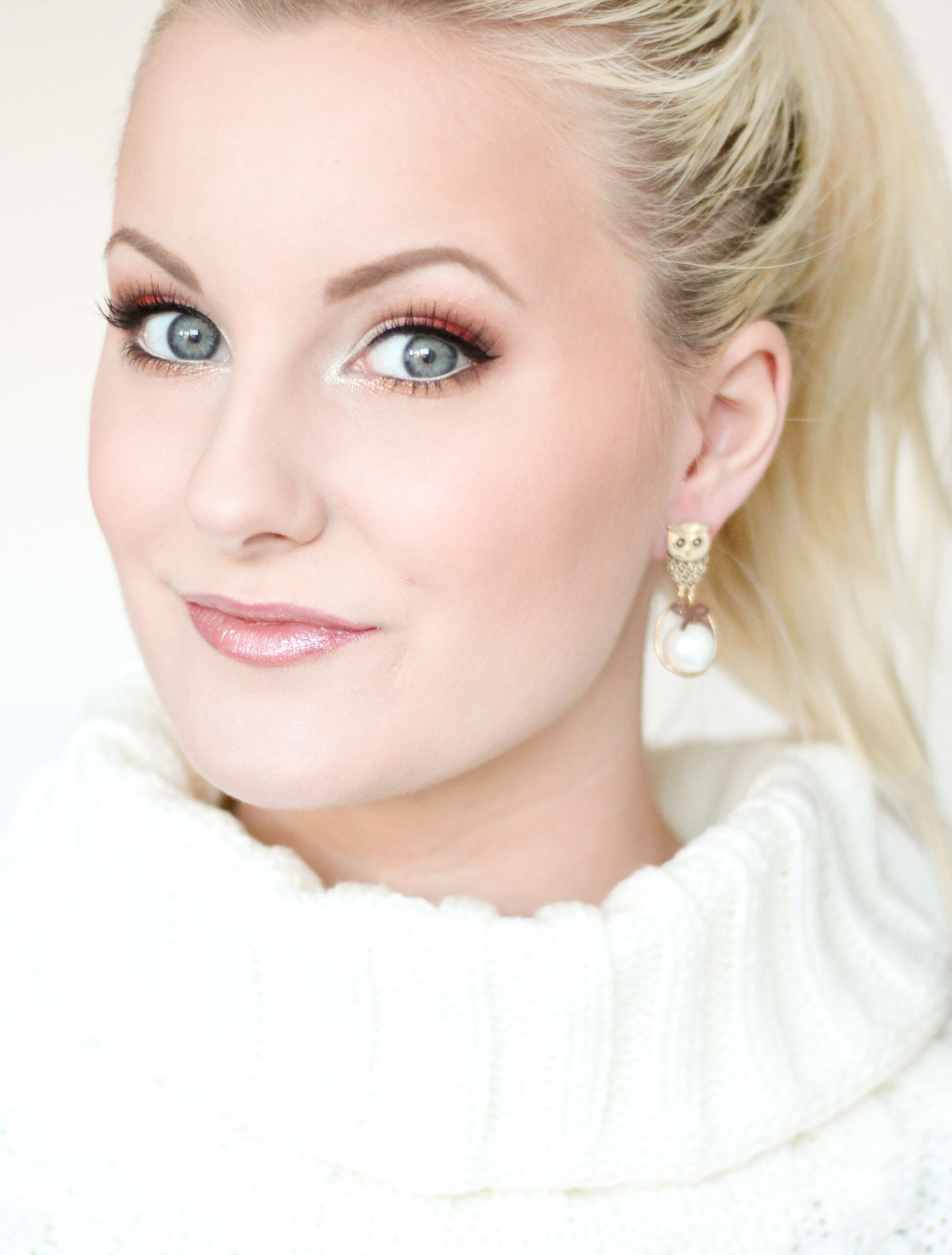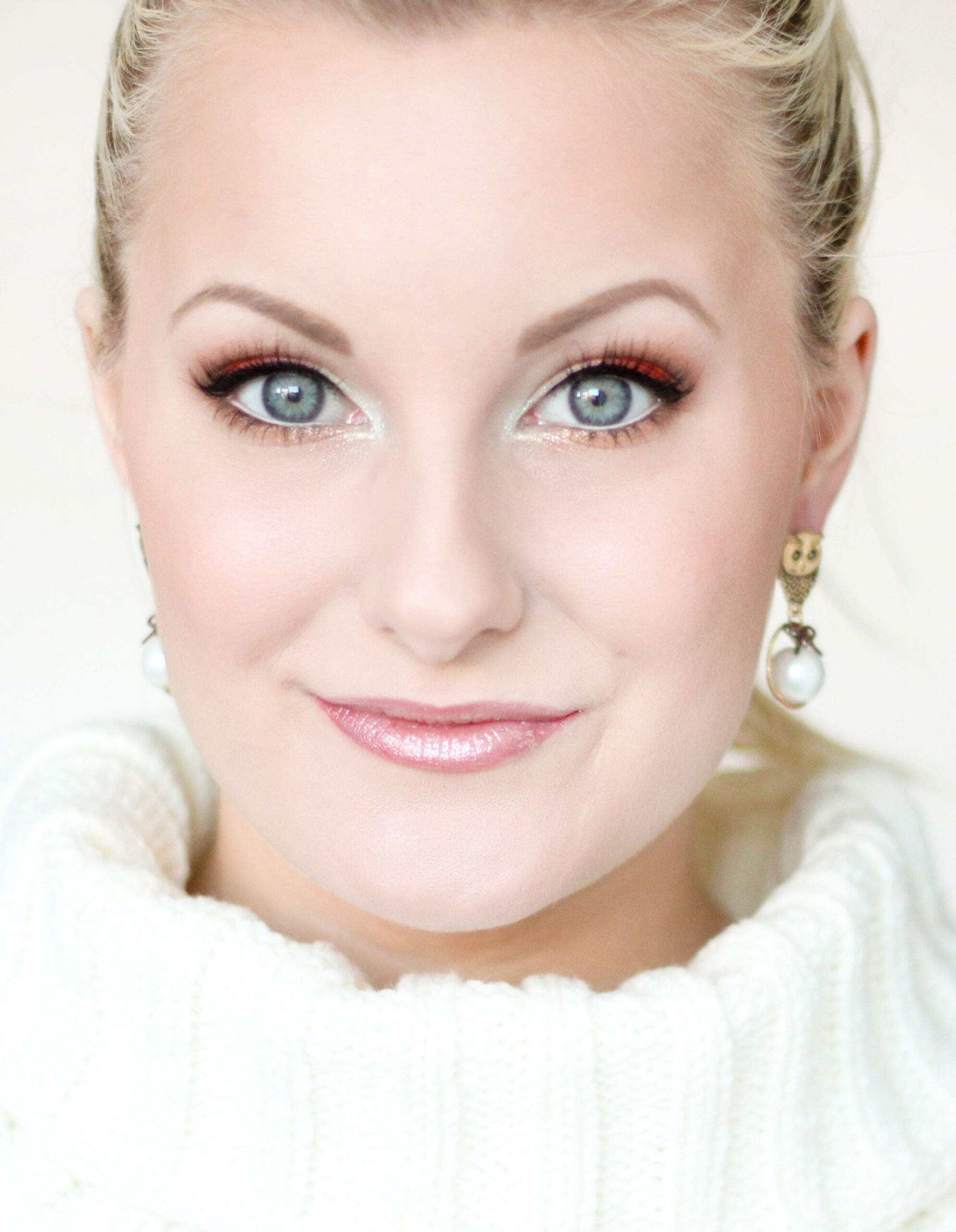 Me gustó mucho tu maquillaje navideño anterior, pero tengo un poco de miedo de que sea un color demasiado duro como lo es en la escuela y no quiero centrarme demasiado en mi maquillaje, ¡incluso si quiero que sea bonito! :) Tiene ojos grises / azules, piel mixta entre tonos cálidos y fríos. Cabello rubio fresa. ¡Me encantaría tener oro de por medio! :) ”