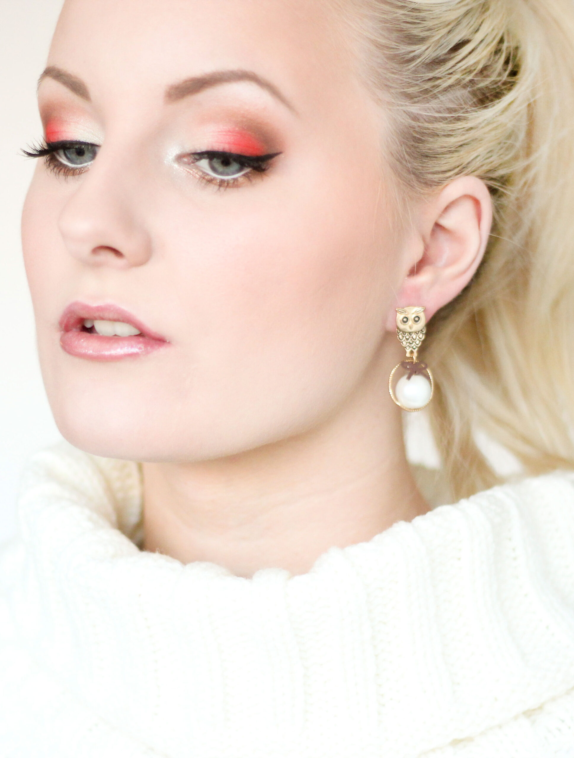 Palabras descriptivas: Colorido, Brillante, Delineador de ojos con ala, Varias sombras de ojos diferentes. Blanco, claro (blanco / amarillo), rojo, morado, marrón, dorado, naranja