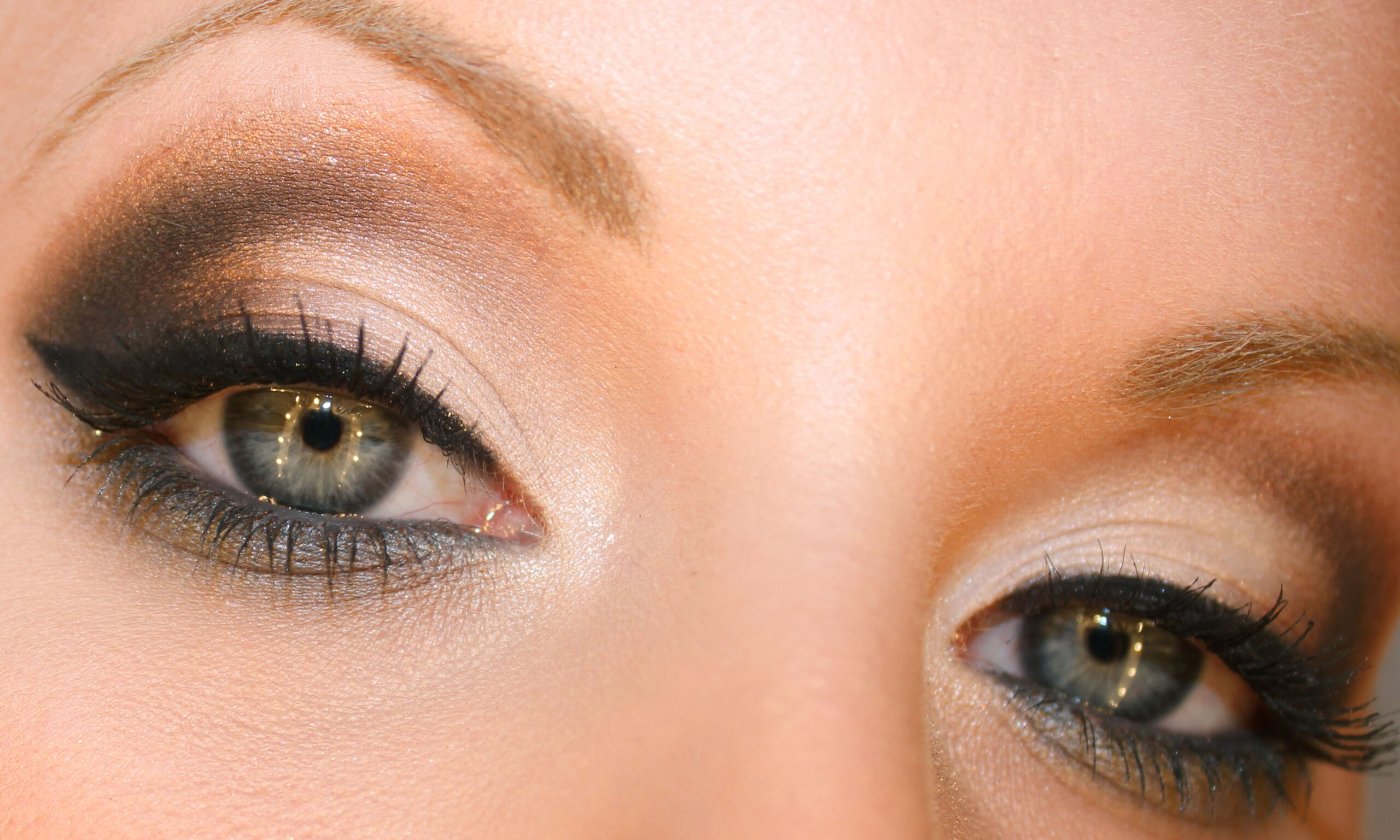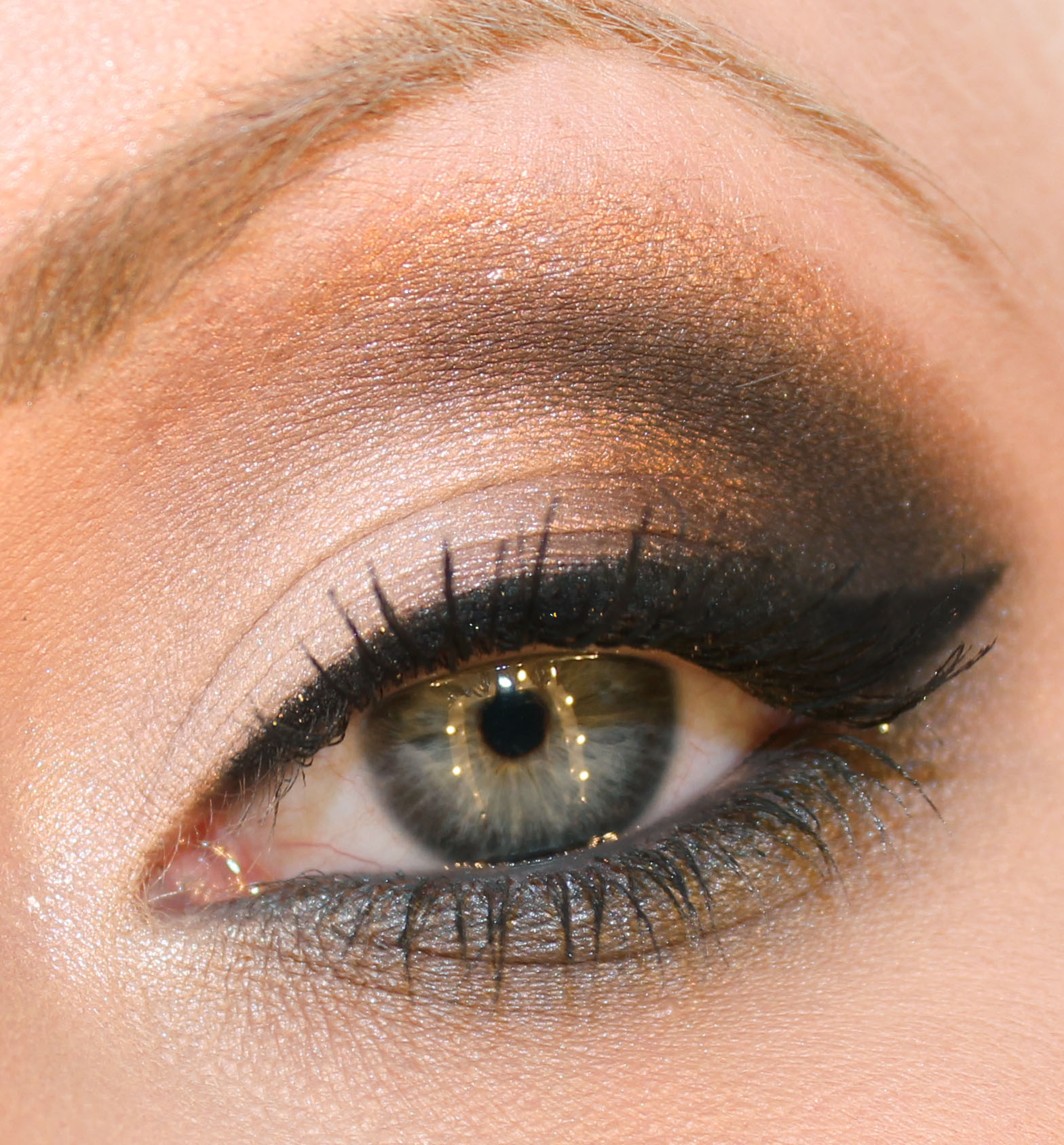 Sombra de ojos marrón dorado al final del párpado y sobre la línea del globo.
