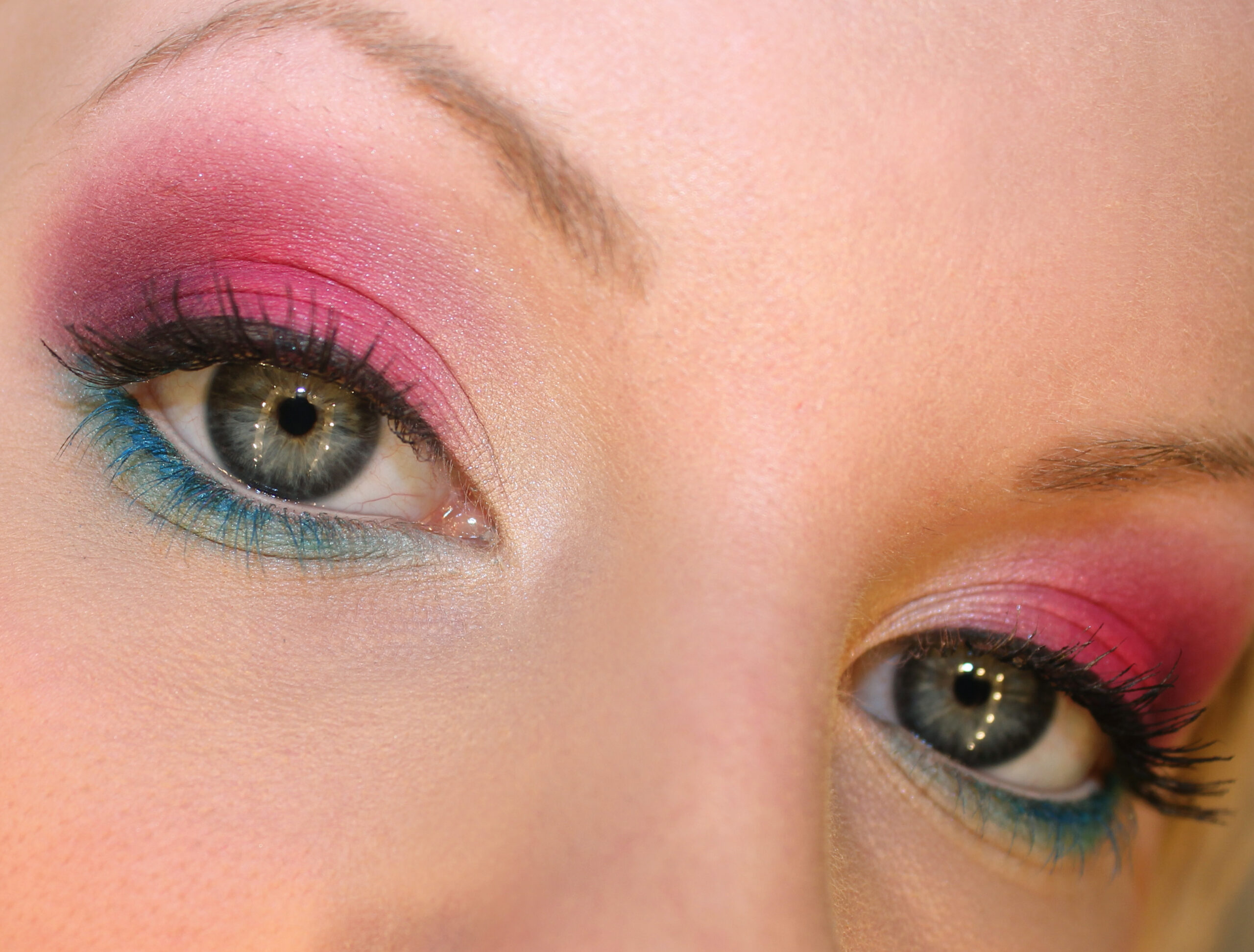 Sombra de ojos turquesa a lo largo de la línea de las pestañas inferiores.