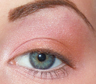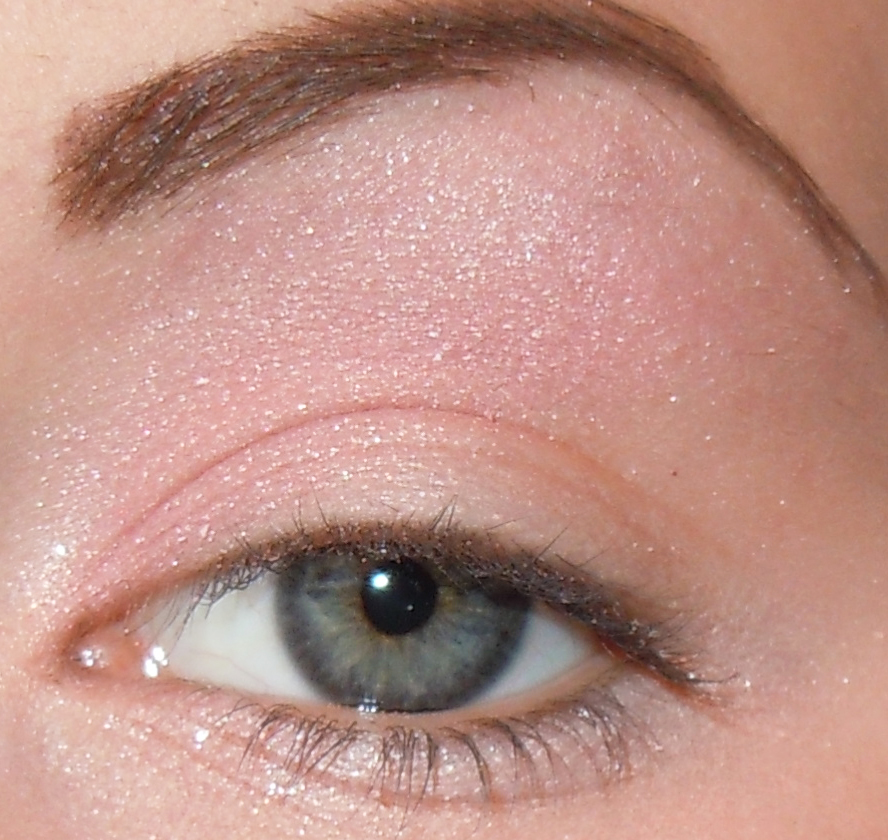 Rosa claro sombra de ojos en la parte inferior del párpado y ligeramente por encima de la línea del pliegue.