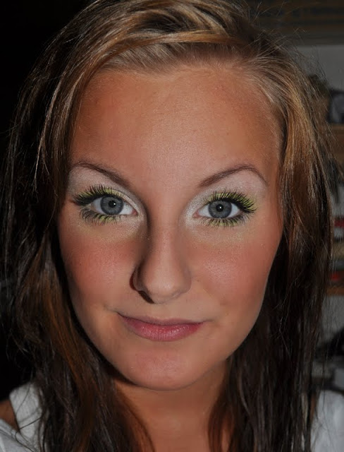 Verde sombra de ojos en la parte inferior del párpado y un poco hacia arriba en la línea del globo.