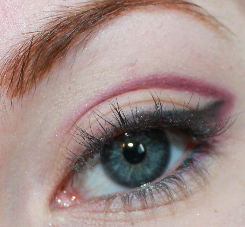 Rosa claro, casi blanco, sombra de ojos en la parte inferior del párpado.