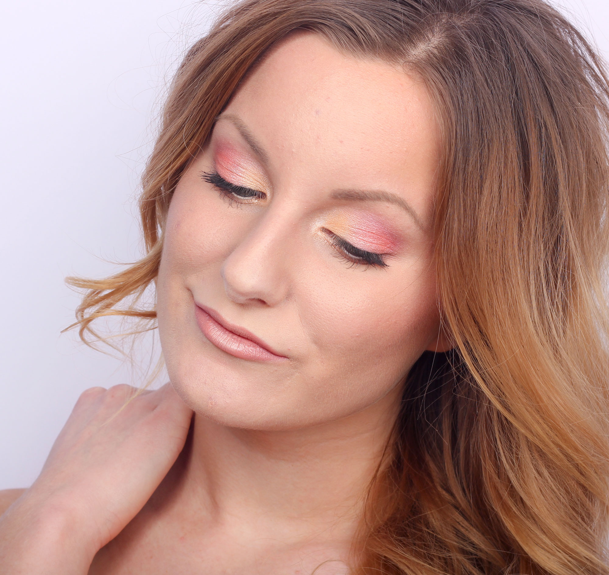 En cambio, ofrezco un maquillaje más antiguo aquí, un look súper rápido que les mostré en abril, ¡que es absolutamente maravilloso cuando quieres maquillarte más! Las sombras de brillo brillante en la paleta Peach Melba de Serie Paeses Opal resalta muy bien tus ojos, mientras que la agradable combinación de colores anima todo el look :)
