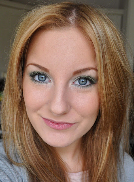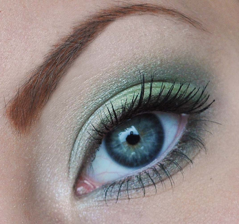 Verde delineador de ojos en todas las filas superiores y más externas de pestañas, Mojar un salvaje.