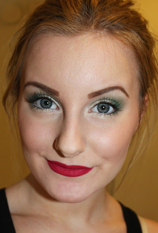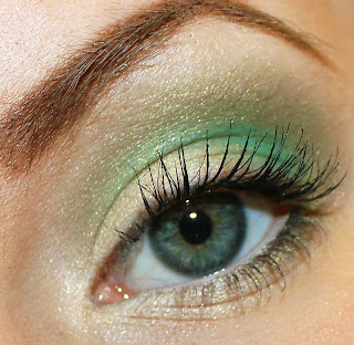 Hoy traté de mezclar un verde caqui con los pies en la tierra y una sombra de ojos "verde regular" bastante brillante.