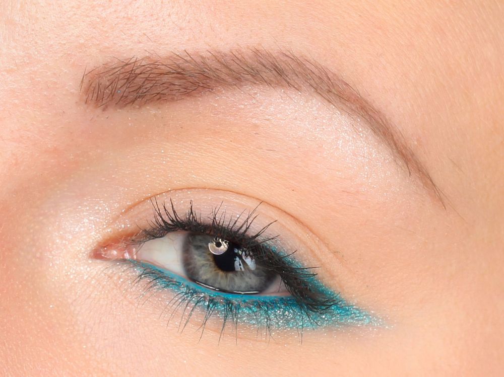 El delineador de ojos turquesa es impermeable e increíblemente duradero, ¡se adapta bien incluso a lo largo de la línea de flotación durante todo el día! Disponible en más colores, pero el turquesa es mi favorito.