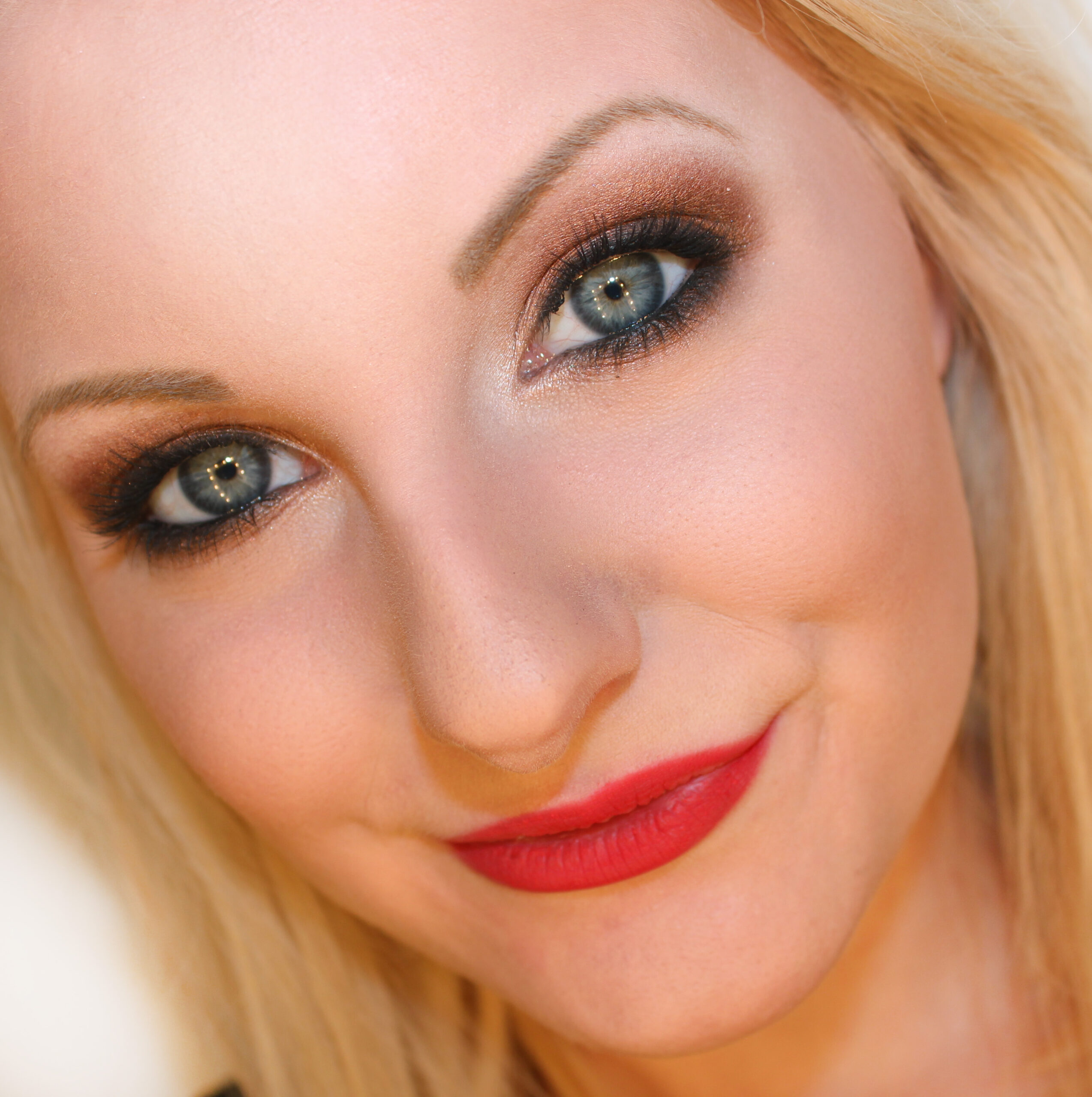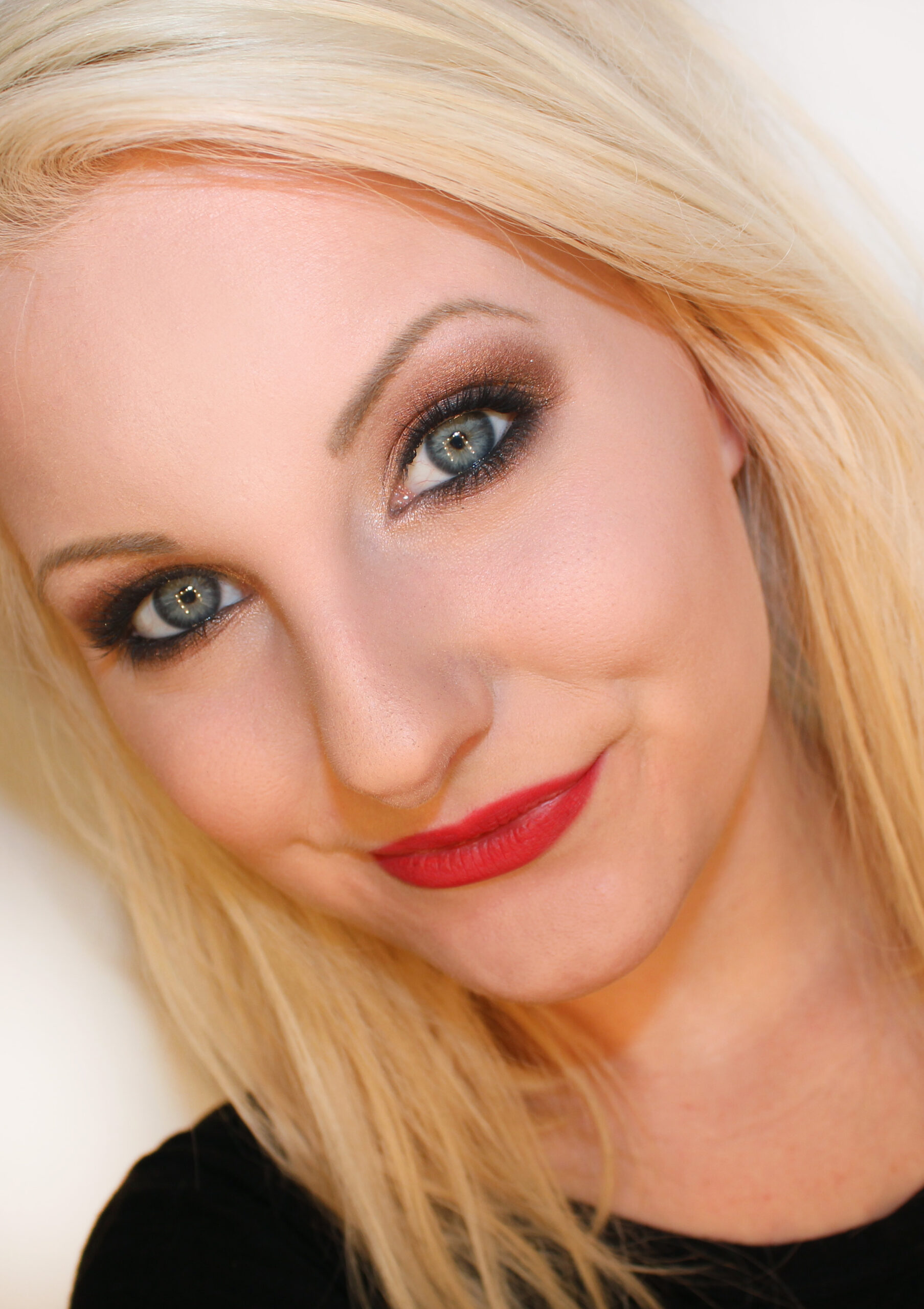 Sombra de ojos marrón claro en la esquina del ojo y ligeramente hacia arriba en el párpado.
