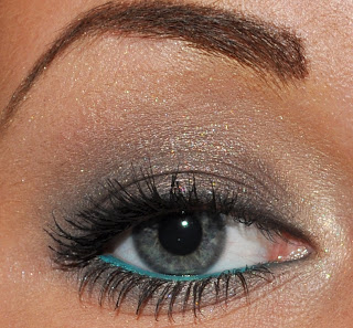 Beige sombra de ojos en la línea de las pestañas inferiores.