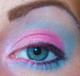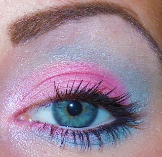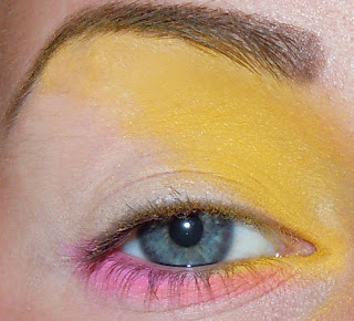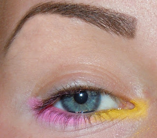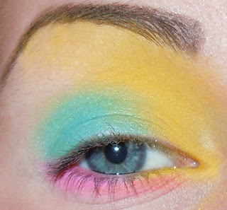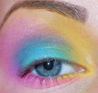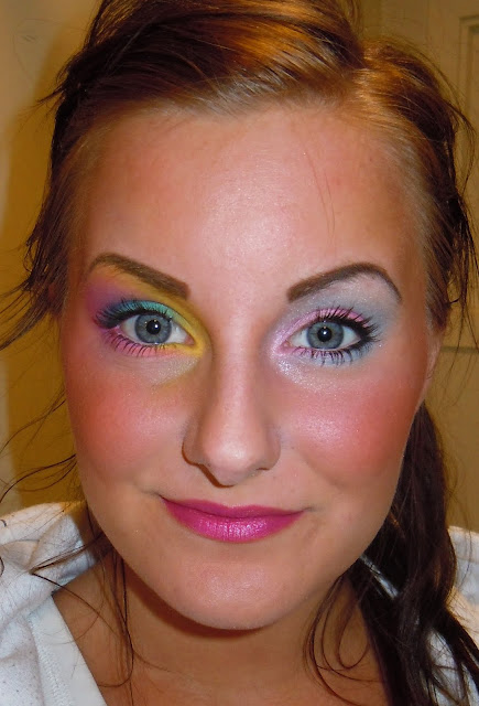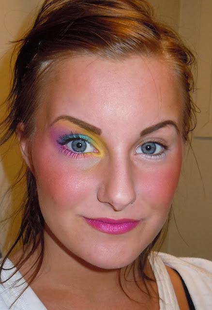 Ayer me preguntaron si podía hacer un maquillaje de los 80 en los colores amarillo, azul y rosa.