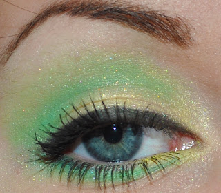 Verde claro sombra de ojos sobre la línea del globo (solo en el otro extremo)