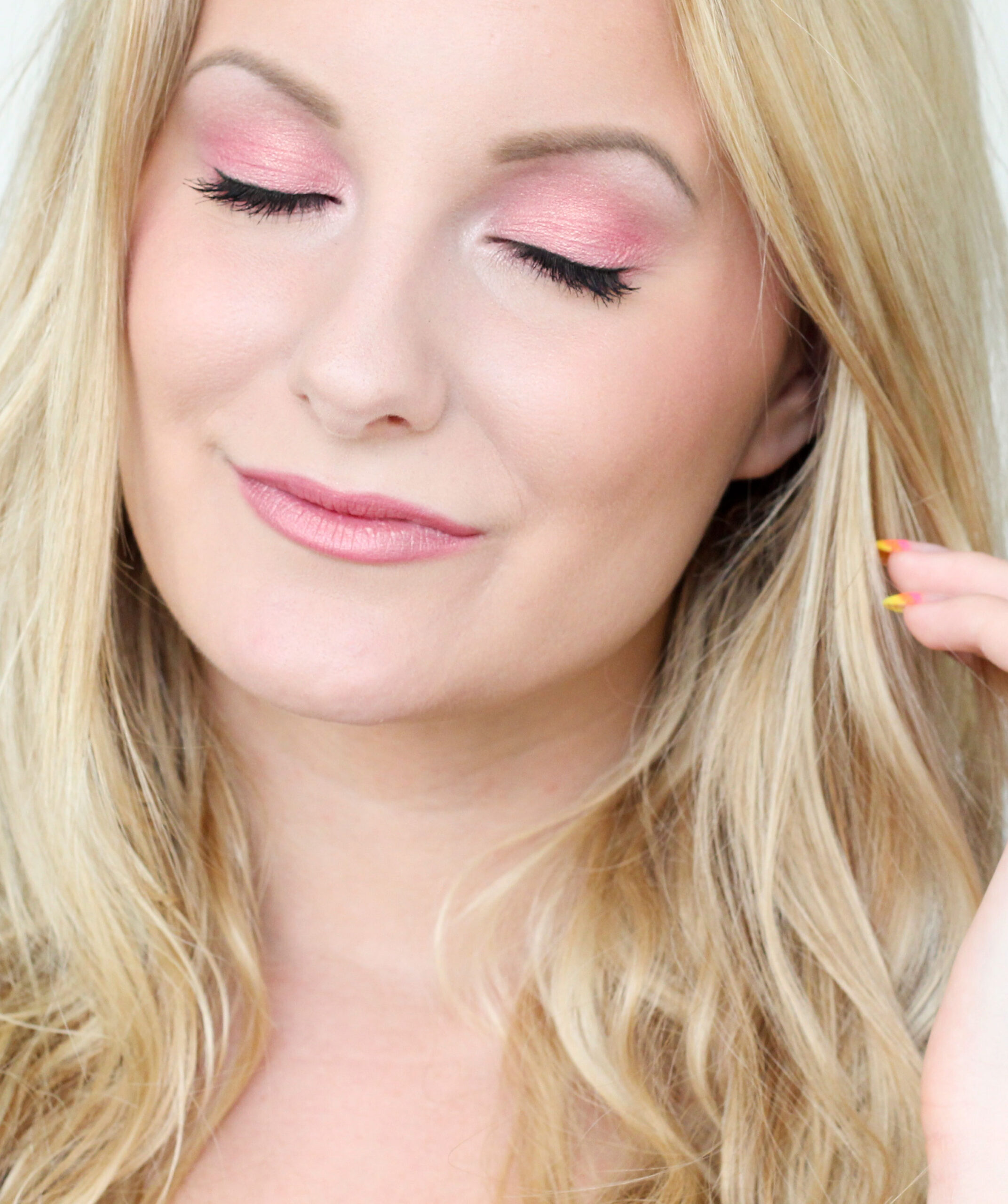 ¡El lápiz labial Pür Minerals "Shopaholic" (se vende solo en septiembre) y el rubor que Kinky aplicó en la parte superior para una apariencia brillante!