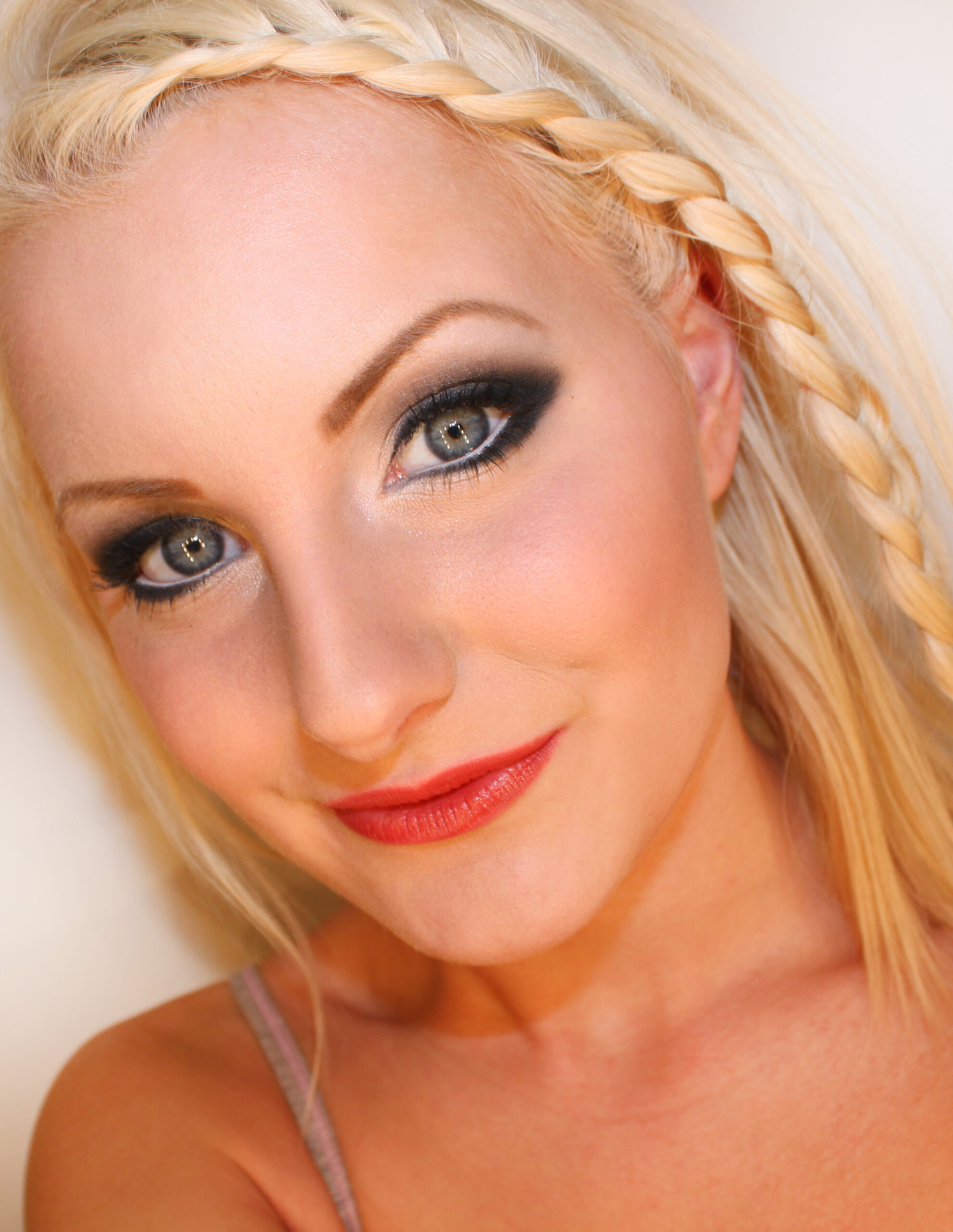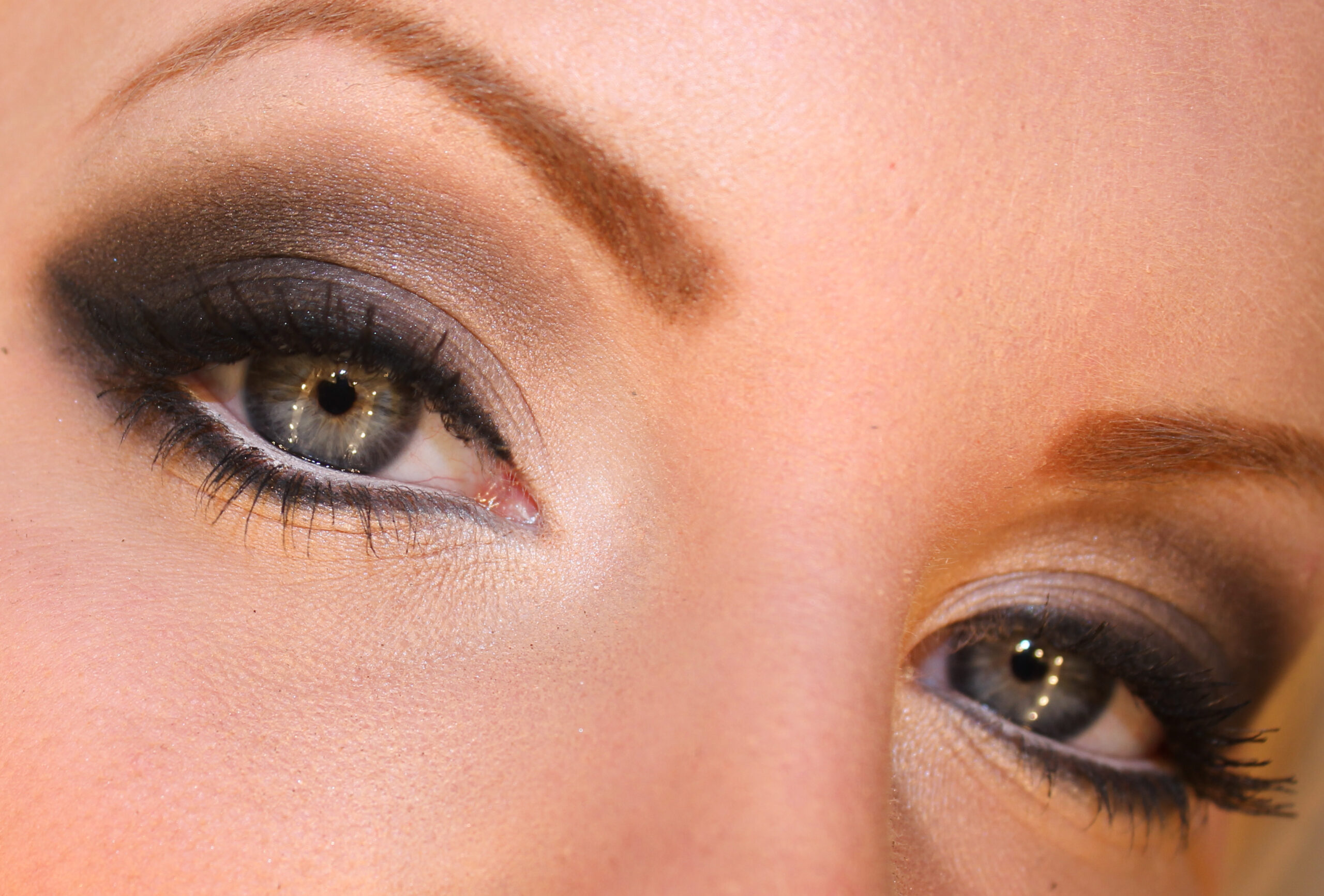 Sombra de ojos negra hollín al final del párpado, a lo largo de la línea del globo y hacia abajo al final a lo largo de la línea de las pestañas inferiores, Smashbox.