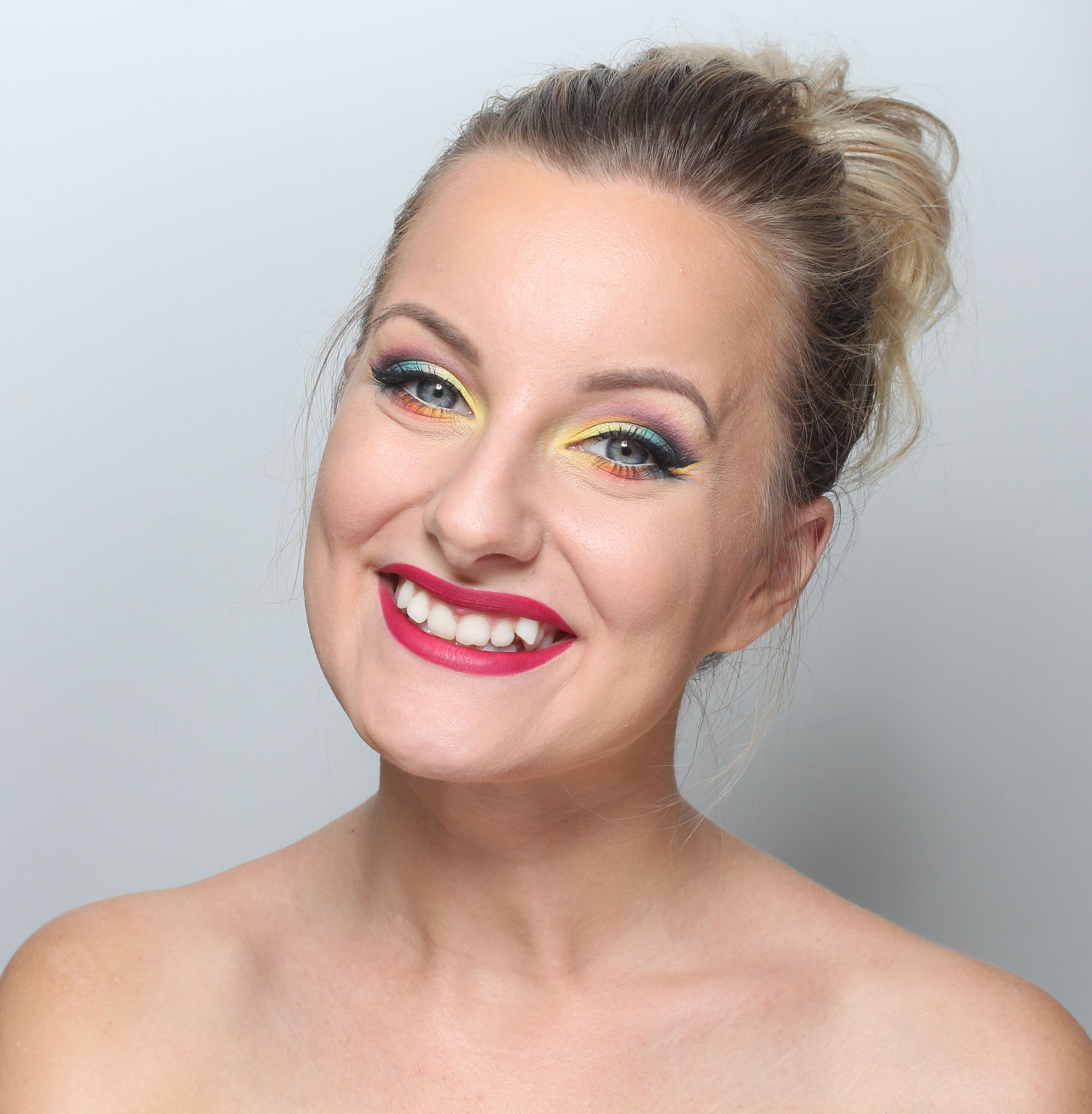 - Ljusgrön ögonskugga innerst på undre fransraden, i ögonvrån (utanför det gula) och i uttoningen i globlinjen