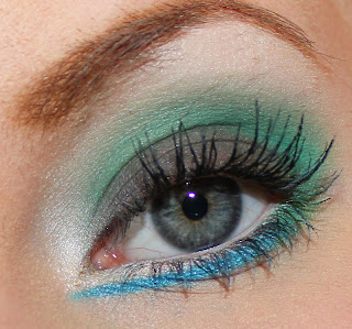 Mörkgrön ögonskugga ytterst på undre fransraden och längs globlinjen.