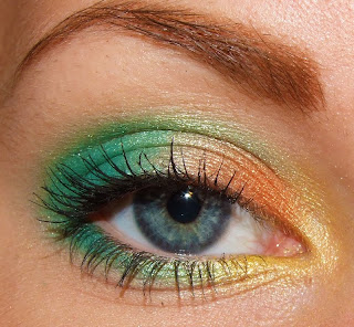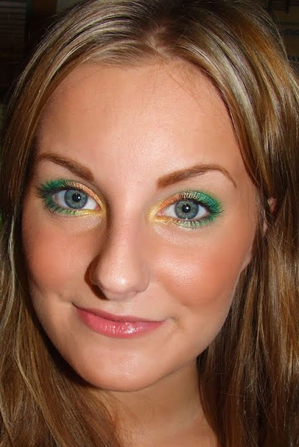 Grön ögonskugga i mitten av ögonlocket och mitten av undre fransraden.