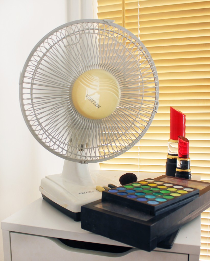 Här lyser dock solen in hela dagarna och lägenheten är en bastu! Jag kan inte ens ha jeans på mig. När jag dessutom sitter framför sminklamporna så får jag utan att överdriva svettpärlor i pannan och på överläppen.