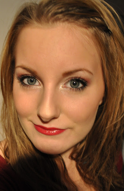 Och igår blev det en lite rödlila sminkning med röda läppar till, som fick mig att tänka på julafton!