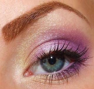 Vit skimrig ögonskugga på den ljuslila ögonskuggan (för att liva upp lite)