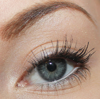 Ljus ögonskugga i ögonvrån och innerst på undre fransraden.