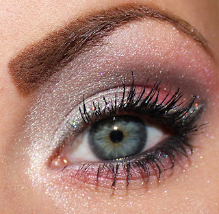 Glitter ytterst på ögonlocket, under öonbrynet och ner på undre fransraden, Kryolan Glamour Sparks.