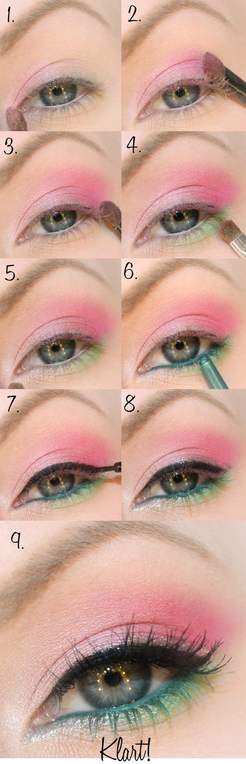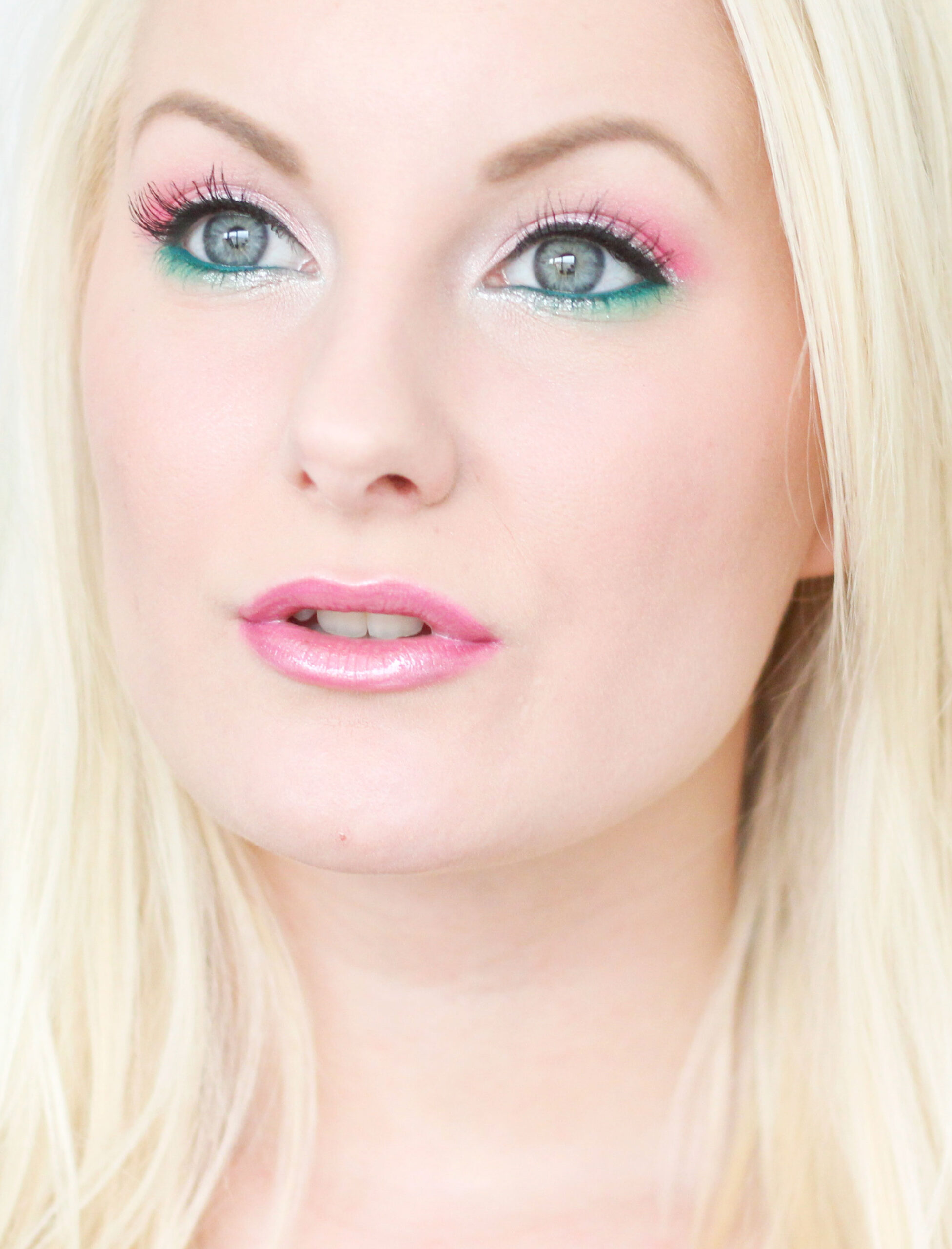 Beskrivande ord: Färgglatt men inte mörkt, Till ett specifikt event, Färgglatt, Party, Ljust, Glittrigt, Eyeliner utan vinge, Flera olika ögonskuggor, Grön, Ljus (vit/gul), Rosa.