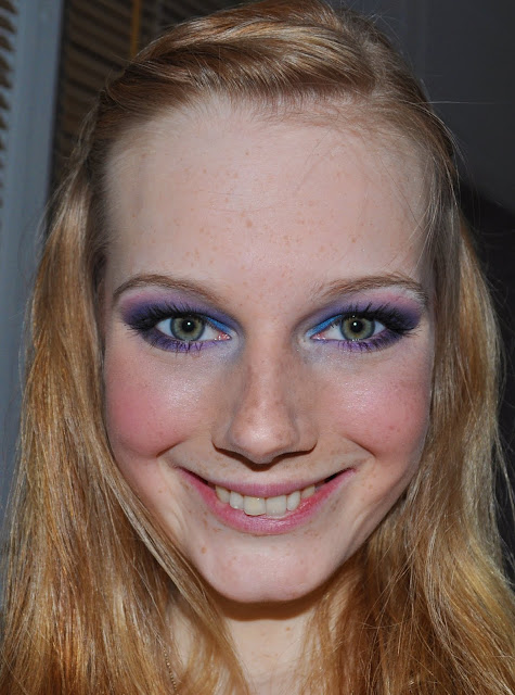 Frida ville bli ganska extremt partysminkad men vågade inte om inte jag såg likadan ut, därför är ögonbilden på mig och helbilden på Frida! :)