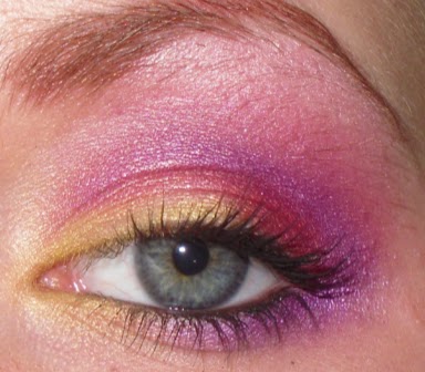 Lila ögonskugga runt ögat. Inte enda in på ögonlocket, 88 paletten.