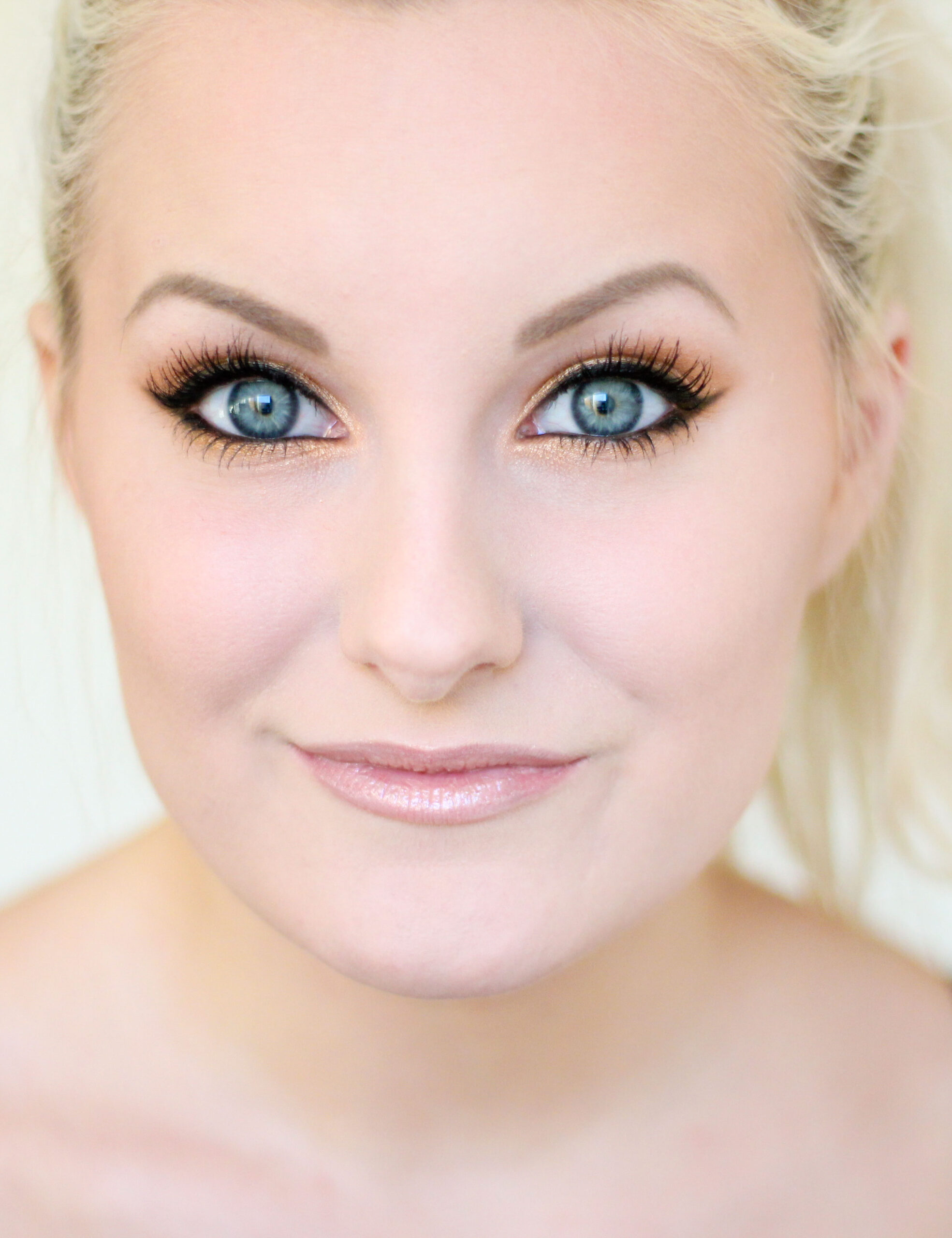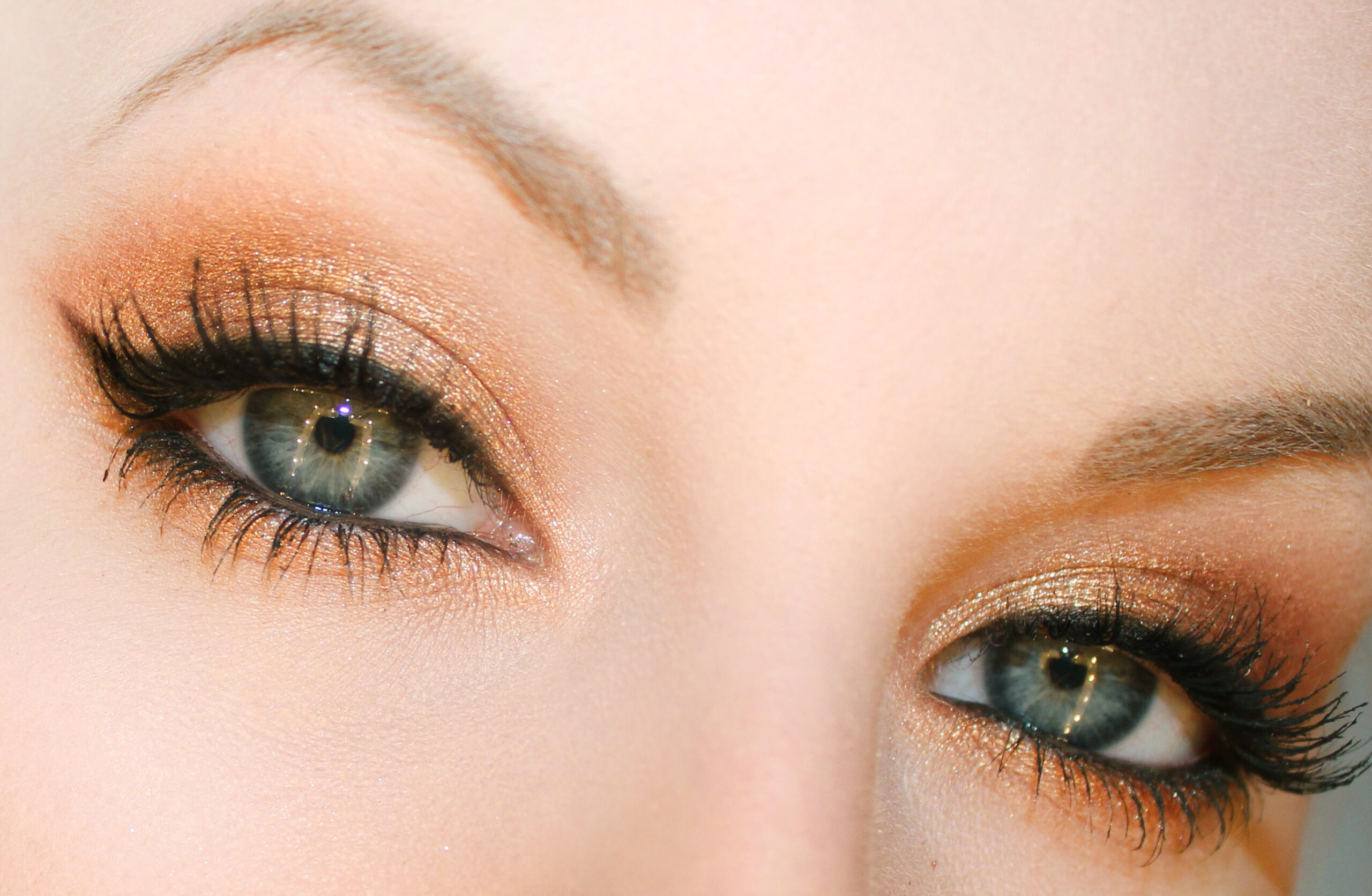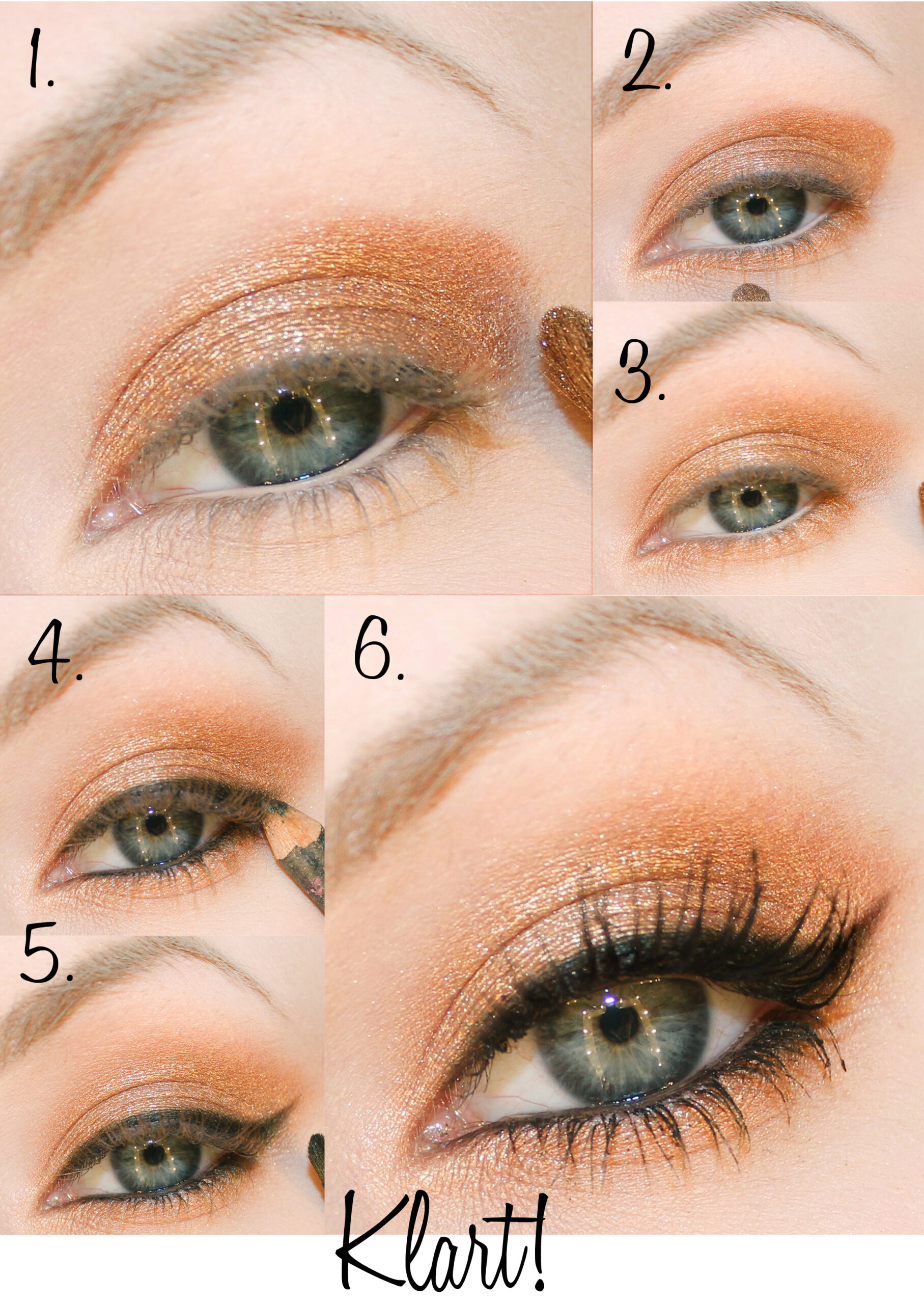 1. Guldig ögonskugga på hela ögonlocket, lite cat eye-form, nudh mineral (Gorgeous Gold)