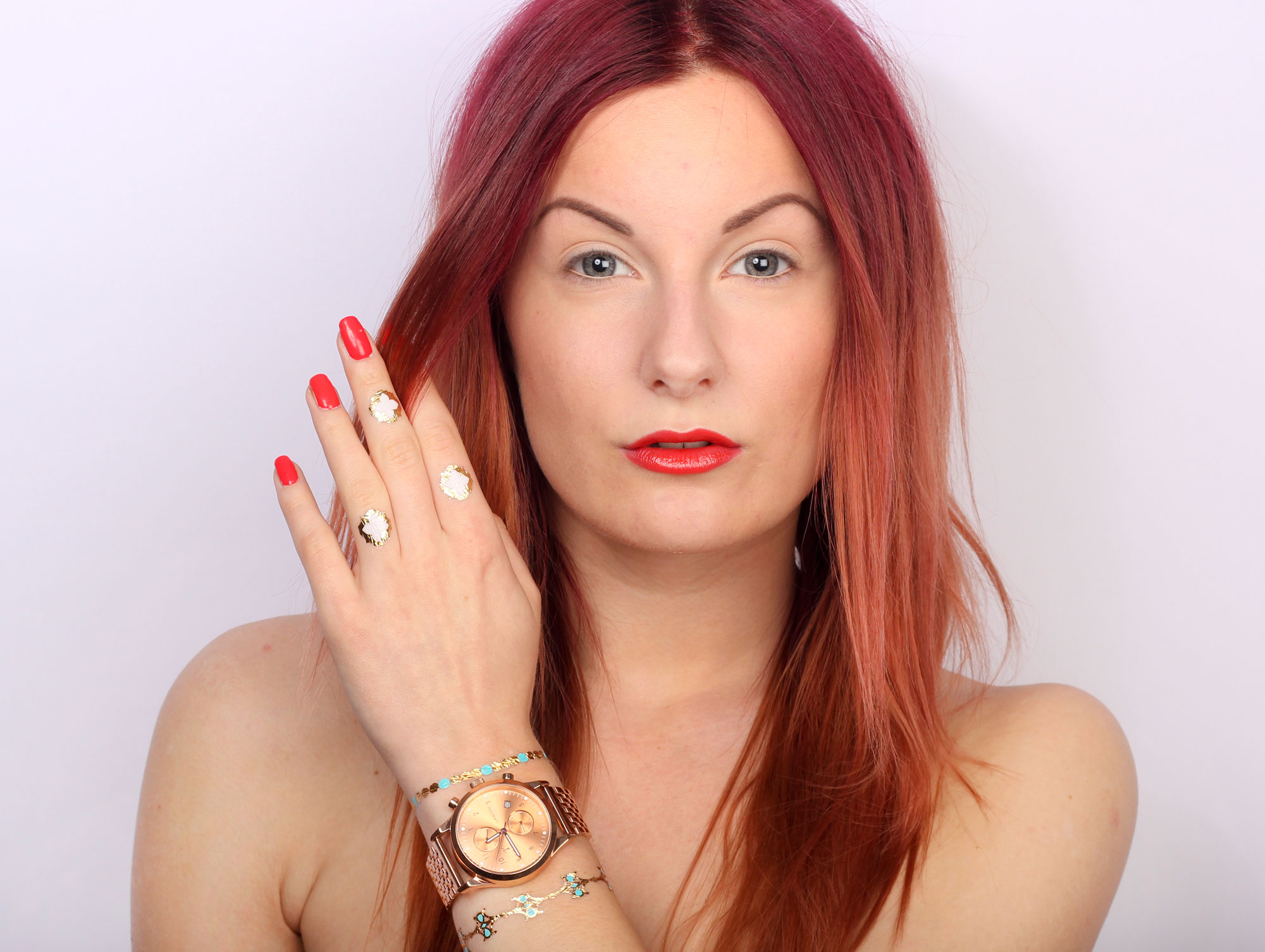 Den roséfärgade tonen i klockan är så himla snygg till hårfärgen i längderna också. Monica som färgade mitt hår sa samma sak ”woow vad snygg din klocka är till håret!”, det var dock inte genomtänkt haha :)