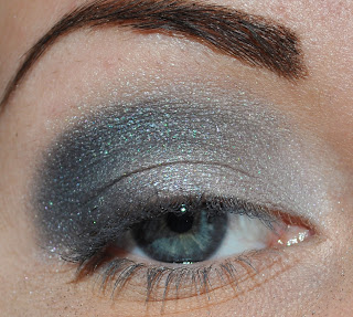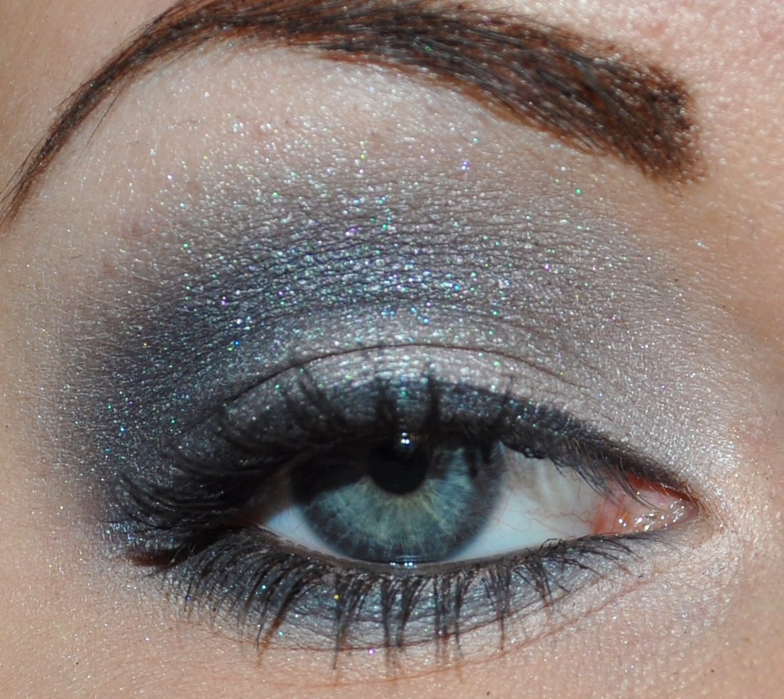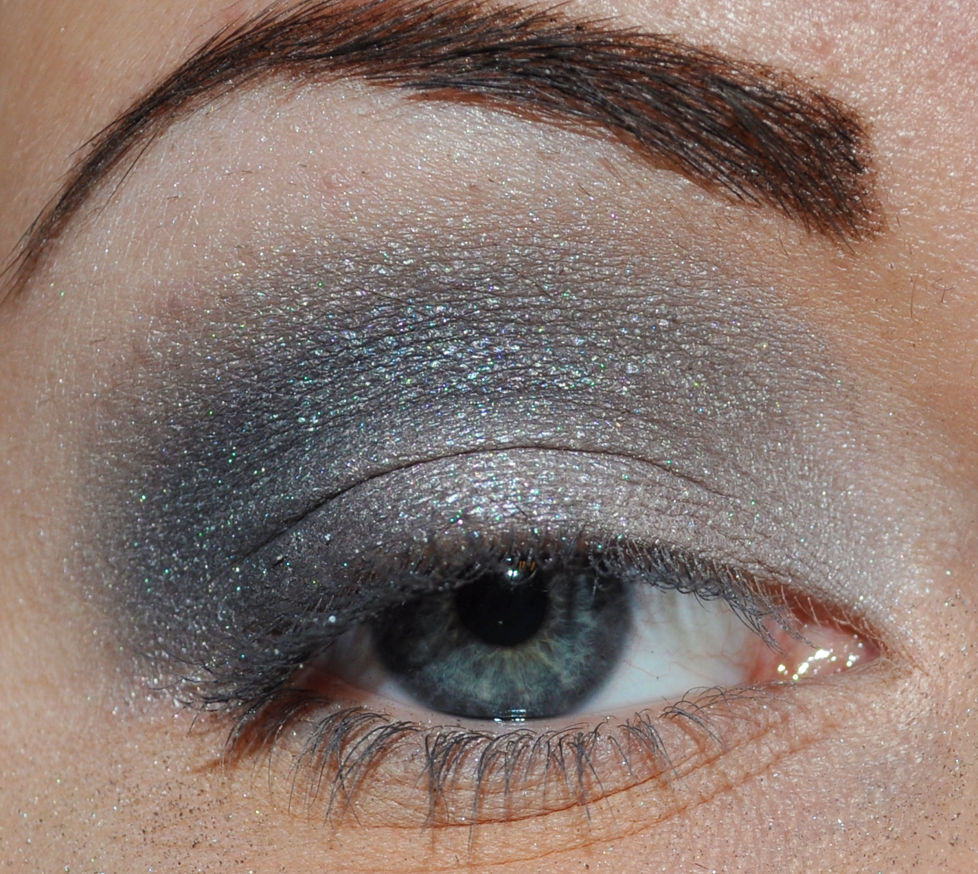 Grå ögonskugga på hela ögonlocket.