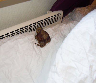 Hanna var i mitt rum idag och snackade lite skit. Under tiden gick Jalle in i hennes rum och när hon kom tillbaka låg den här ”lilla” krabaten i hennes säng: